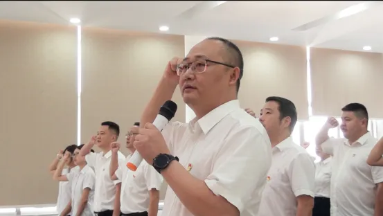 活動伊始,全體人員莊嚴(yán)肅立,齊聲高唱《中華人民共和國國歌》,激昂的旋律瞬間點燃了現(xiàn)場的熱烈氛圍,讓大家感受到了作為中華兒女的自豪與責(zé)任。隨后,在集團黨委書記的帶領(lǐng)下,全體黨員面向鮮紅的黨旗,重溫入黨誓詞。一句句鏗鏘有力的誓言,回蕩在整個會場,黨員們表達了對黨的無限忠誠和為共產(chǎn)主義事業(yè)奮斗終身的堅定決心 。